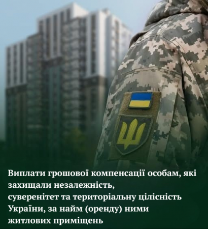 Виплати грошової компенсації особам, які захищали незалежність, суверенітет та територіальну цілісність України, за найм (оренду) ними житлових приміщень